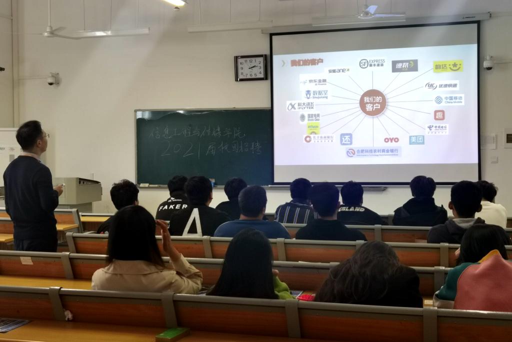 11月11日,为切实做好18级电信对口实习就业工作,我院诚邀安徽顺丰速运有限公司、大连金慧融智科技股份有限公司(合肥分公司)等3家对口企业举办校园招聘双选会。为使企业和学生充分沟通交流,分两场分别在信息楼B305和教学南楼111举办企业宣讲,同学们积极参加,现场气氛轻松愉快。