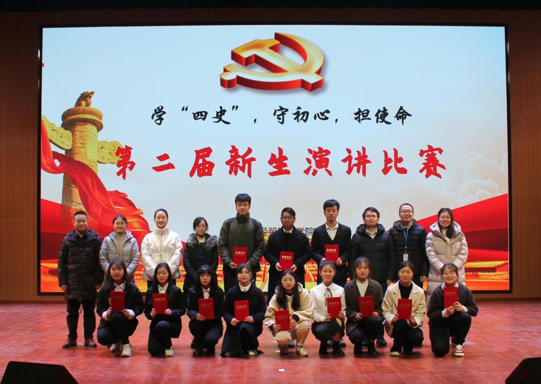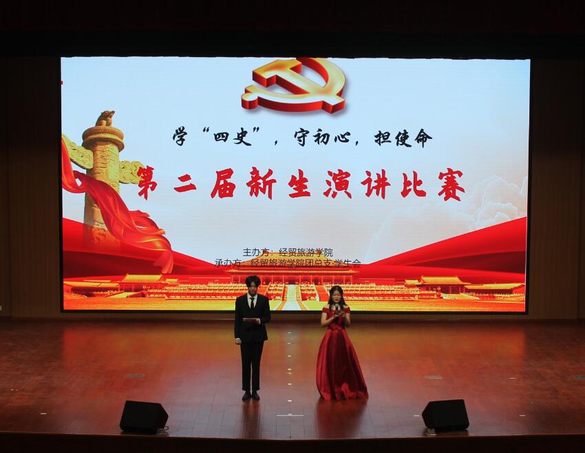 为深入学习贯彻落实习近平总书记关于党史、新中国史、改革开放史、社会主义发展史学习及新冠肺炎疫情防控工作的重要讲话和指示精神,持续深化爱国主义教育,引导新生进一步坚定理想信念,传承红色基因,激发爱国力行,12月18日下午四点,由经贸旅游学院团总支、学生会举办的“学‘四史’,守初心,担使命”新生演讲比赛决赛在汇心湖校区大学生活动中心举行。