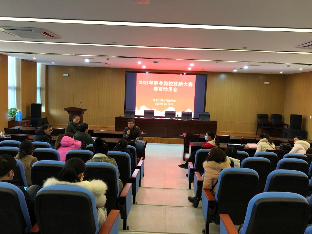 新一年的职业院校技能大赛开赛在即,为了更好地做好寒假期间赛前培训工作,1月19日,信息工程与传媒学院在汇心湖校区图书馆1楼报告厅召开2021年职业院校技能大赛赛前动员会,该院院长章炳林教授主持会议,副院长许鹏教授和全体指导教师参加会议。