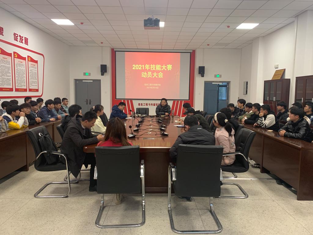 按照《安徽省教育厅关于开展2021年全国职业院校技能大赛高职组省级选拔赛的通知》要求,全国职业职业院校技能大赛开赛在即,为了更好地做好培训工作,3月18日,信息工程与传媒学院在汇心湖校区信息楼1楼会议室召开2021年职业院校技能大赛动员大会,该院院长章炳林教授主持会议,全体参赛学生和指导教师参加会议。