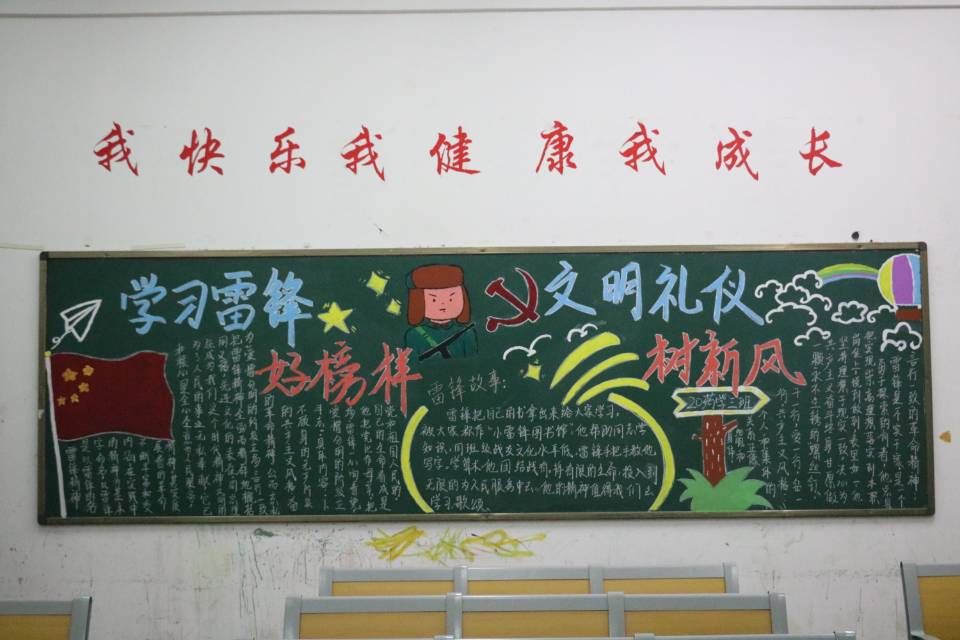 本次黑板报要求设计内容切合主题,突出雷锋精神的内容。对此,各班级学生认真对待,交出了一幅幅高质量的作品。此次黑板报评比一方面,让学生营造团结友爱的人际关系,构建和谐稳定的社会风气,就应教育引导人们自觉用为人民服务的人生观指引人生,还较好地提高了学生的艺术视野和审美能力。