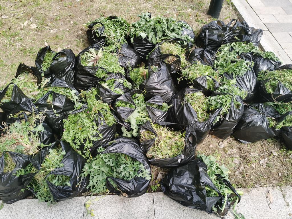 此次劳动教育课采取分组划片的方式进行,为学生配备了铲刀、拔草手套、垃圾袋等专业除草工具。同学们在各自班主任的带领下准时到达指定区域,一到现场便迅速投入除草工作,他们分工合作、相互配合、干劲十足,经过一下午的辛勤劳动圆满完成除草任务。