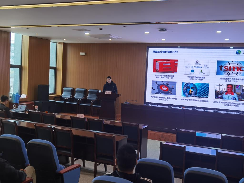 接着由张彪工程师带来《网络安全发展趋势与热点技术》的宣讲,分享了信息安全热点技术和业内的先进技术,让我们了解了网络安全行业的形势及发展趋势。