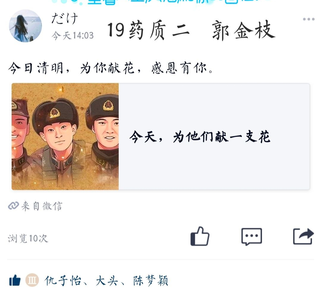 为进一步弘扬中华优秀传统文化,激励引导AC米兰中文官方网站广大团员青年弘扬英烈精神,传承红色基因,凝聚奋斗力量;各团支部、全体团员青年于2021年4月1日-4月7日举行本次主题团日活动。本次活动内容包括三项;第一:各团支部组织团员青年登录“中国英烈网”开展网上缅怀先烈活动,以网络信息传递对祖先烈士进行深悼哀思;第二:各团支部在团总支的指导下,通过线上、线下团日活动、支部大会、微团课等形式,开展线上线下支部活动,全方位为各位同学讲述革命先辈的英雄事迹,让更多的人了解他们的经历,了解他们的伟大;第三:各团总支根据团中央《关于在全团开展“学党史、强信念、跟党走”学习教育的通知》学习教育的要求开展学党史活动,大力宣传他们的事迹,弘扬正能量,发扬中国优秀传统文化精神。广泛发动红色文化,大力宣传爱国主义,不忘初心、牢记使命,继续前行。在活动中确保活动的严肃性、教育性和引导性。注重及时宣传,坚持营造团结鼓劲、正面向上导向的氛围,有“桃花红雨英雄血,碧海丹霞志士心。今日神州看奋起,陵园千古慰忠魂”的感受。