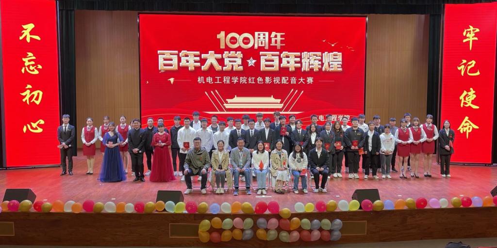 为庆祝建党100周年,弘扬党的优良革命传统,坚持党的领导,追忆革命岁月,传承红色文化,机电工程学院于4月23日晚在大学生活动中心二楼举办红色影视作品配音大赛。该院党总支副书记丁迎春,校团委副书记赵倩倩,该院学管办主任杨晨,该院团总支书记朱何萍,辅导员何舸、张开老师担任评委。