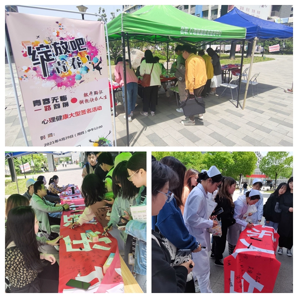“我心向阳,青春绽放” 第十四届“5·25”大学生心理健康文化节各项活动正在合职校园如火如荼地开展,本次签名活动是继开幕式之后的主题宣传活动之一。通过富有仪式感的签名活动,带动同学们关注自身心理健康的热情,引导大学生积极自我调适,开发潜能,完善人格。(供稿:学生处 编辑:杨璨)