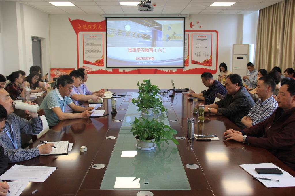 为庆祝中国共产党成立100周年,推动党史学习教育进一步走深走实,5月26日下午,经贸旅游学院在党员活动室召开党史学习教育专题会。全体教职工参加学习,会议由党总支副书记尹仕果主持。