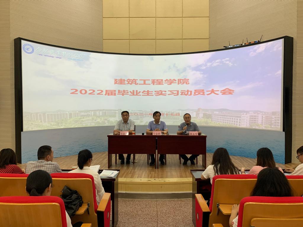 6月17日下午,建筑工程学院召开2022届毕业生实习动员大会,此次会议采用线下会议和线上直播同步进行。该院党政班子及全体教职工,部分学生代表在图书馆二楼报告厅参加会议,2022届全体毕业生观看线上同步直播。