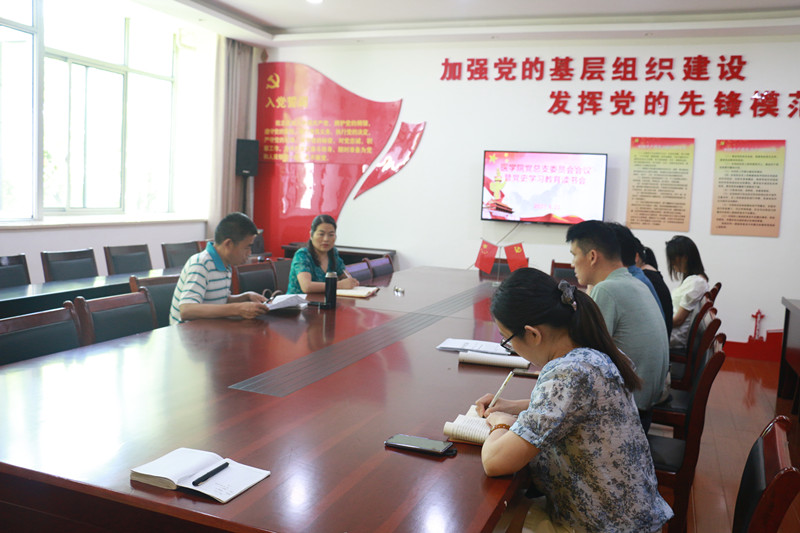 会上,刘惠、于治国两位党员同志分别领学了习近平总书记《论中国共产党历史》一书中的在纪念中国人民抗日战争暨世界反法西斯战争胜利七十五周年座谈会上的讲话》《牢记初心使命,走好新时代长征路》内容,与会人员进行了心得体会分享。学管老师就本学期已完成工作以及暑假、下学期工作计划分别进行了汇报,就“互联网+”大学生创新创业大赛、毕业班就业等工作进行了重点布置。