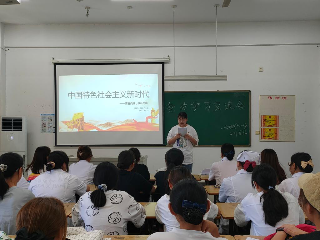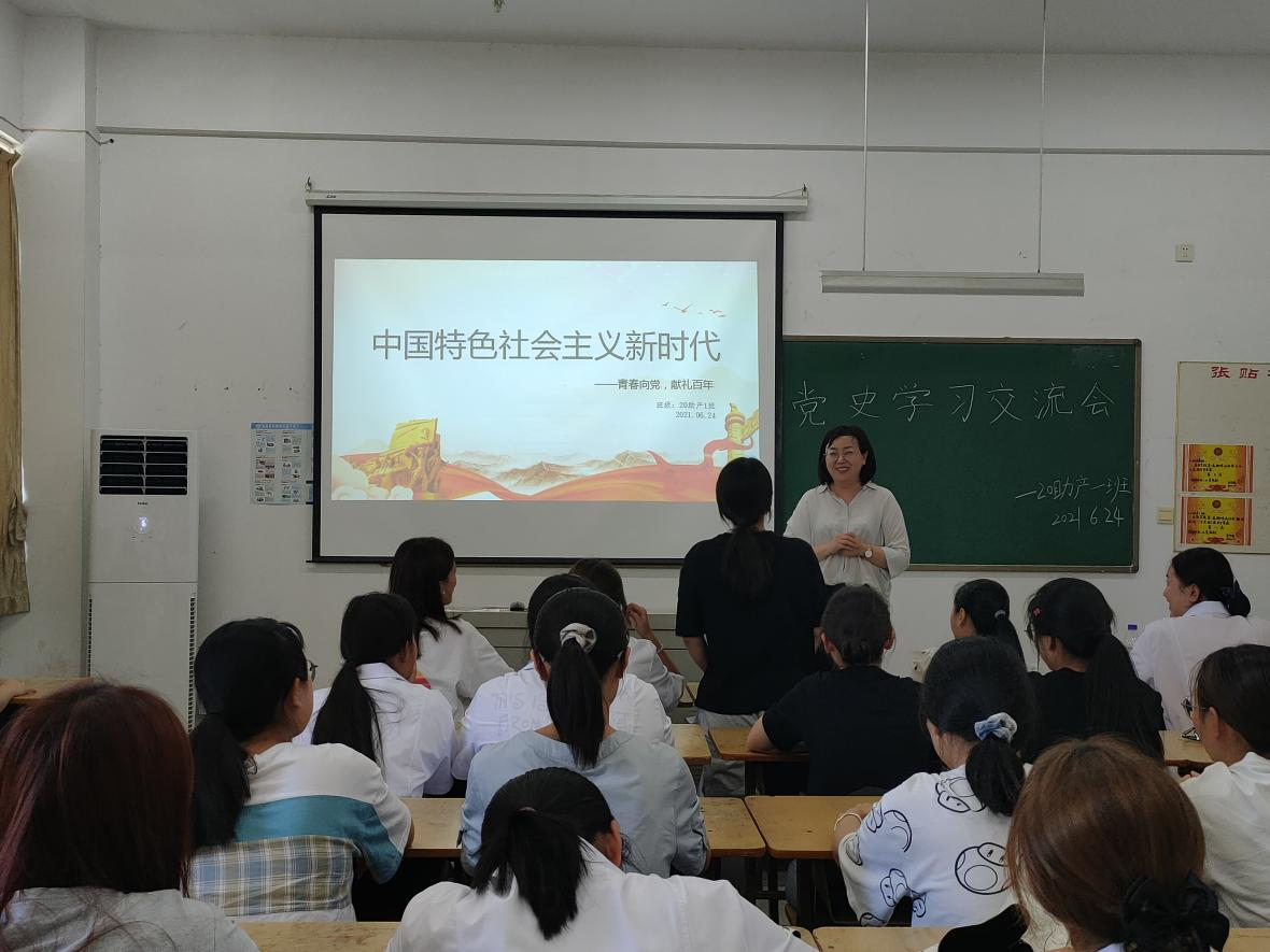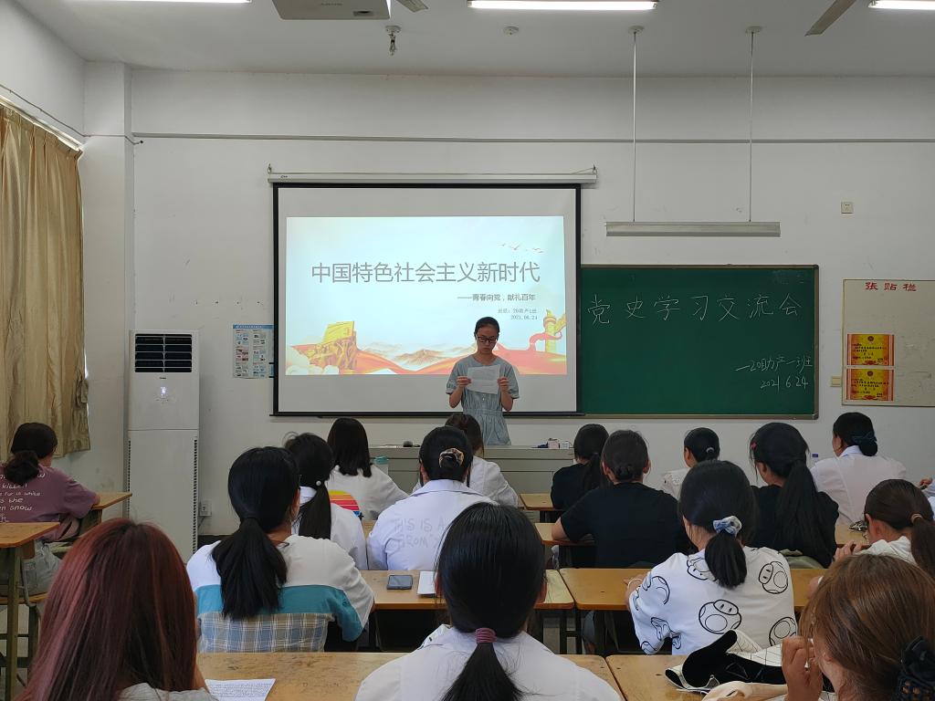 在庆祝中国共产党百年华诞的重大时刻,在“两个一百年”奋斗目标历史交汇的关键节点,为推动党史学习教育走深走实,加强医学院青年思想政治教育,坚定理想信念,6月24日下午,医学院举办的“中国特色社会主义新时代”党史学习交流会在D栋303教室举行。校团委负责人邹坤受邀主持本次交流会,医学院20助产1班团支部全体同学参加了本次交流会。