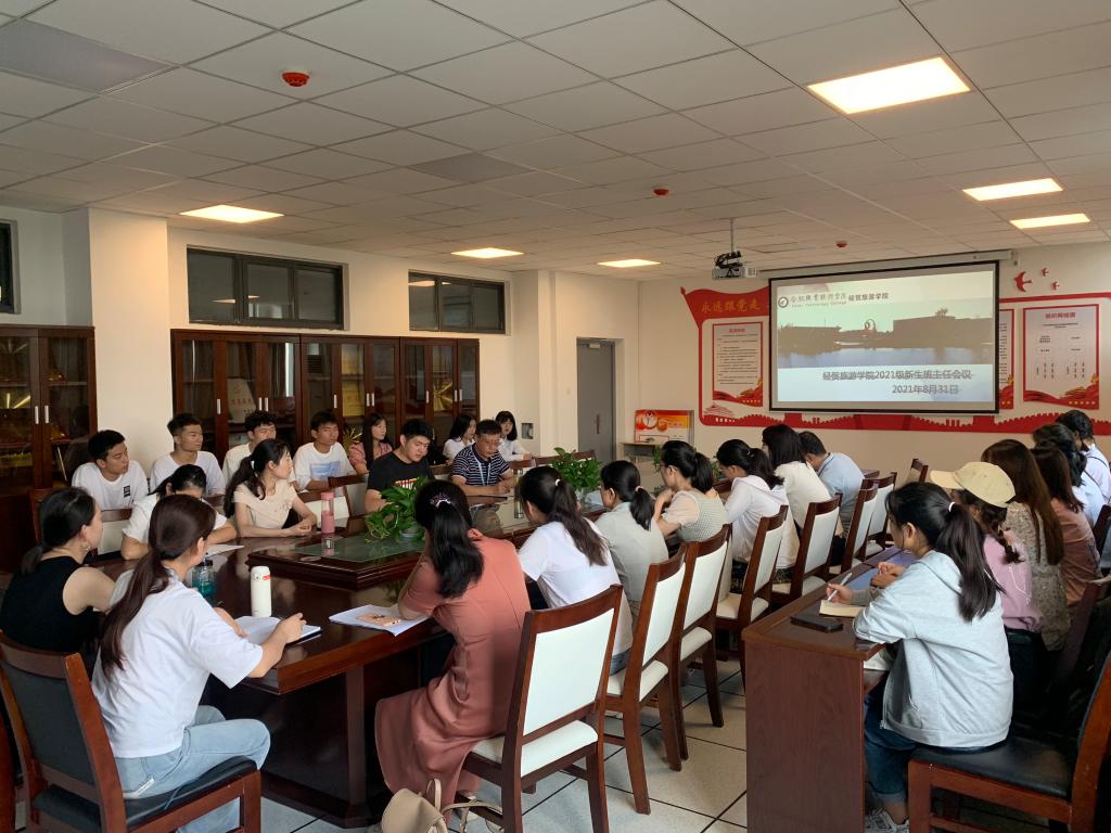 为迎接2021级新生入学报到工作,经贸旅游学院于8月31日下午在经贸楼3楼学院会议室召开21级新生班主任会议,会议由该院学管办主任王明明主持。该院党总支书记梅亚松、党总支副书记尹仕果、全体21级新生班主任和21级新生班主任助理出席了本次会议。