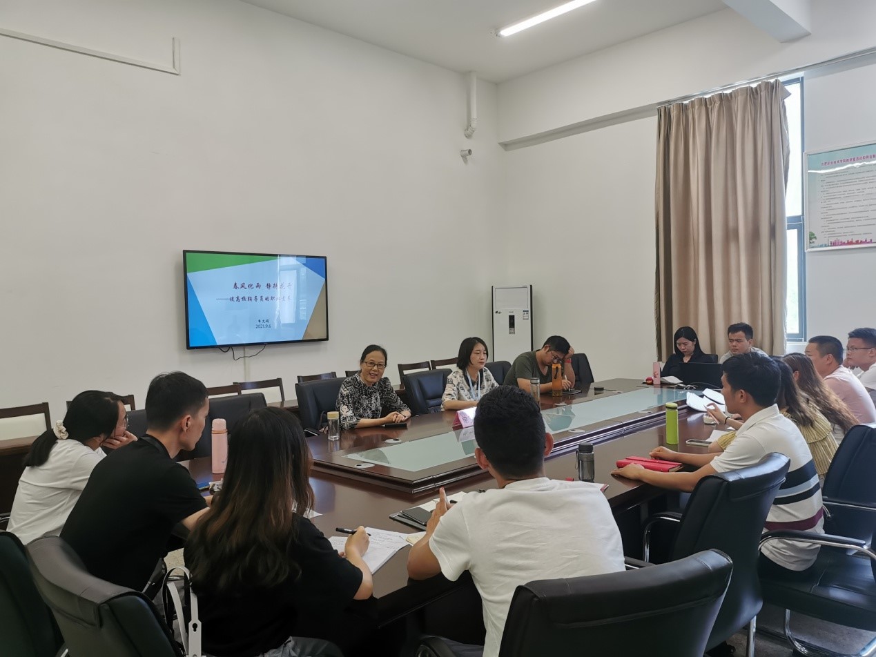 单文娟副教授以《春风化雨,静待花开——谈高校辅导员的职业素养》为主题,围绕辅导员应具备的素质、辅导员素质的培养、辅导员未来发展方向、辅导员职业能力特征和基本要求、辅导员职业能力提升这五个方面,结合自身思想政治教育工作经验、一线辅导员工作经历和丰富的工作案例,分享了宝贵的工作经验与技巧,针对学生工作中出现的一些棘手问题、做好学生管理和服务工作、提升辅导员个人综合素质等方面提出了很好的指导意见和建议。单老师始终情系学生的工作情怀、积极探索工作规律的钻研精神,深深感染了在场的每一位辅导员。