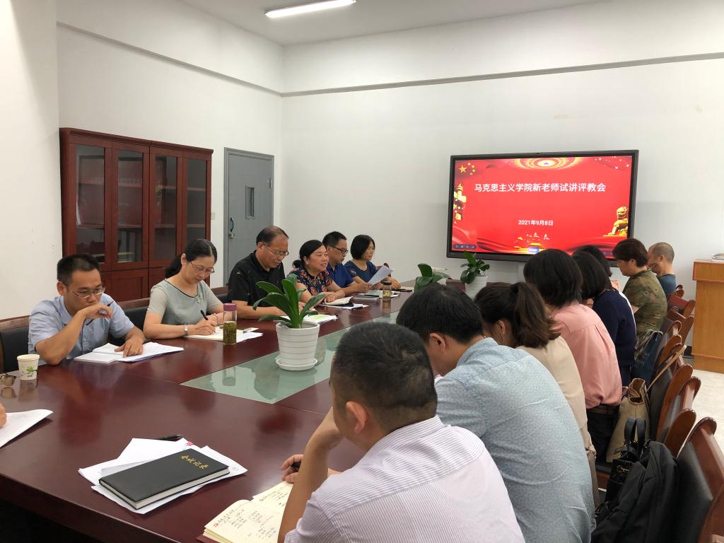 为引导新进教师尽快进入角色,提高他们的教学能力和教学水平,9月8日,马克思主义学院举行了新教师试讲和评教活动,基础教育学院(马克思主义学院)学院党总支书记张海青和学院全体教师参加此次活动。本次活动由马克思主义学院负责人靳玉琼主持。