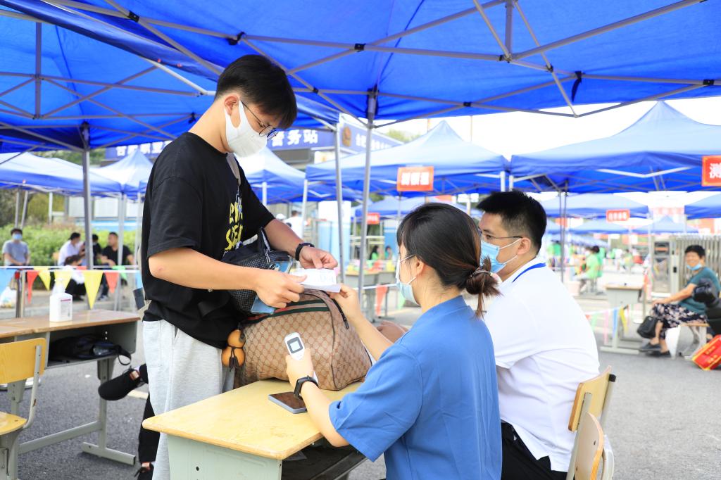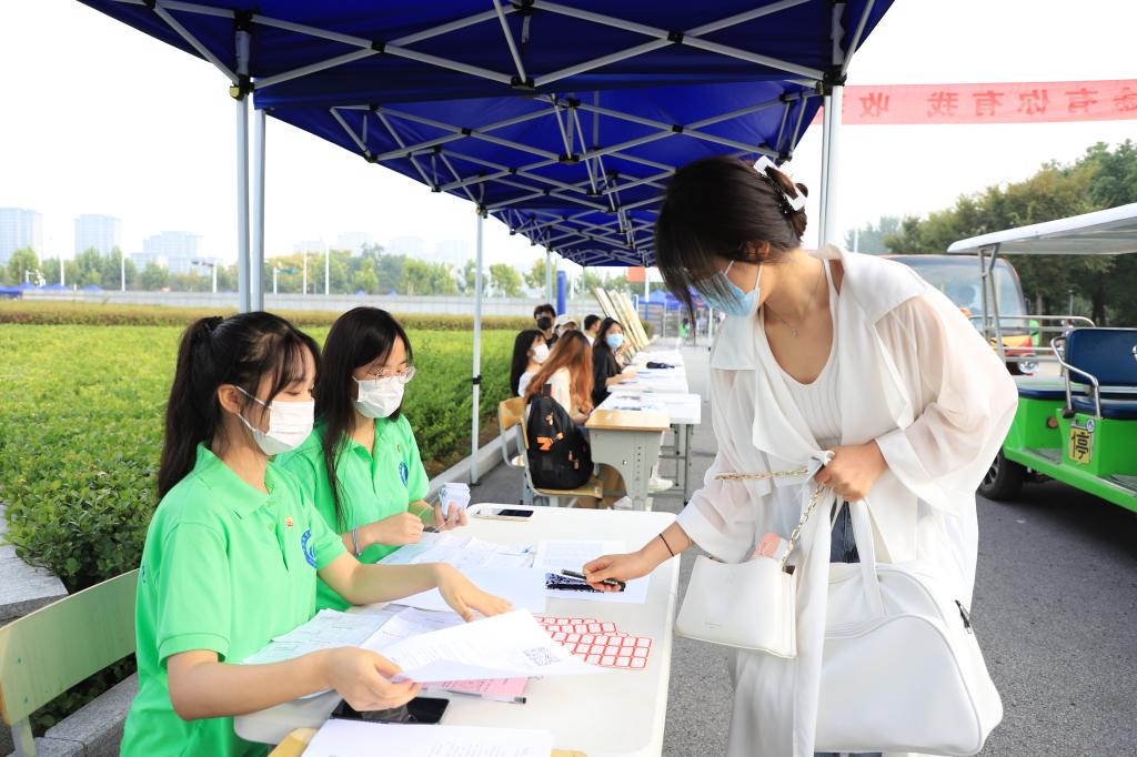 9月9日上午,AC米兰中文官方网站2021级新生报到,学院迎新工作正式启动。AC米兰中文官方网站党总支书记汪春荣、院长刘修树、副院长方丽波、党总支副书记周婷、21级全体新生辅导员在校北门东侧,迎接新生的到来。一线教职员工严格把控返校通道的第一道关卡,引导新生在入口处有序测量体温,核验健康码、新冠疫苗接种记录、14天行程卡以及48小时内核酸检测报告。