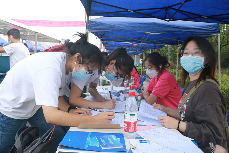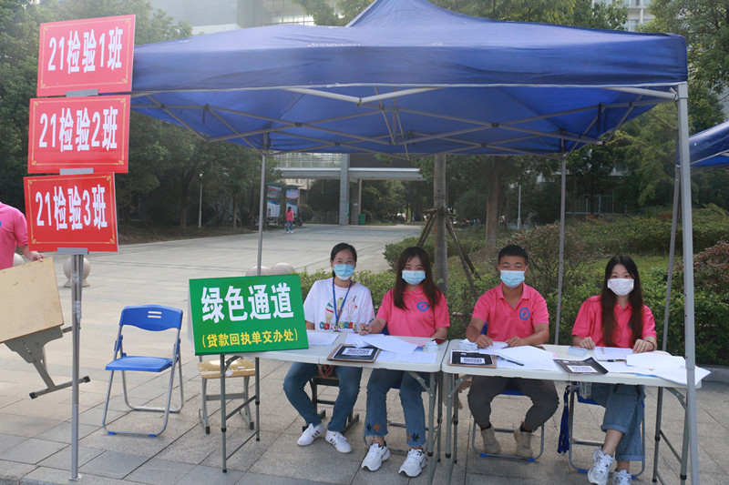 为保证新生一天内报到完毕,医学院教师队伍与学生志愿者们7:00准时到岗,在鼓山校区北侧东门迎新点等候新生报到。学生陆续抵达报到现场,严格按照学校疫情防控相关要求在“一米线”间隔排队、先后进行安康码核查是否绿码、疫苗接种与否、14天行程有无异常、核酸检测报告是否阴性等信息核验、测额温、行李与手消毒、更换口罩、信息登记与报到等多个环节,报到现场井然有序。