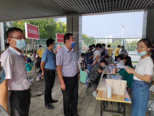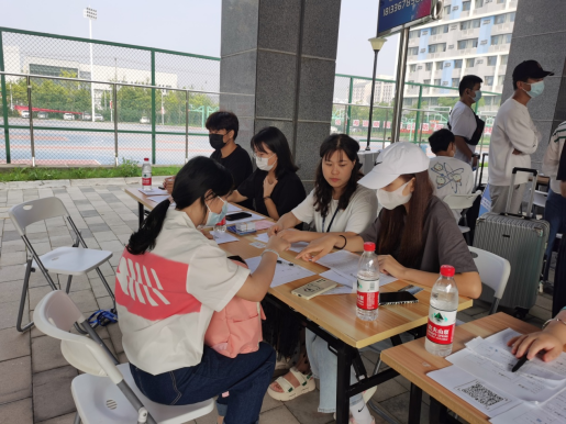 报到当天,上午7时,学院在汇心湖校区西门和学生街分设两个报到点迎接新生的到来。西门设立四个进校通道,新生按照要求扫安康码、出示证件、测量体温、登记信息、手消毒及行李消毒等程序后陆续进入校园,学生志愿者及时进行引导和帮助,学校菜鸟驿站和物业公司也分别出动电动车帮助学生搬运大件行李。