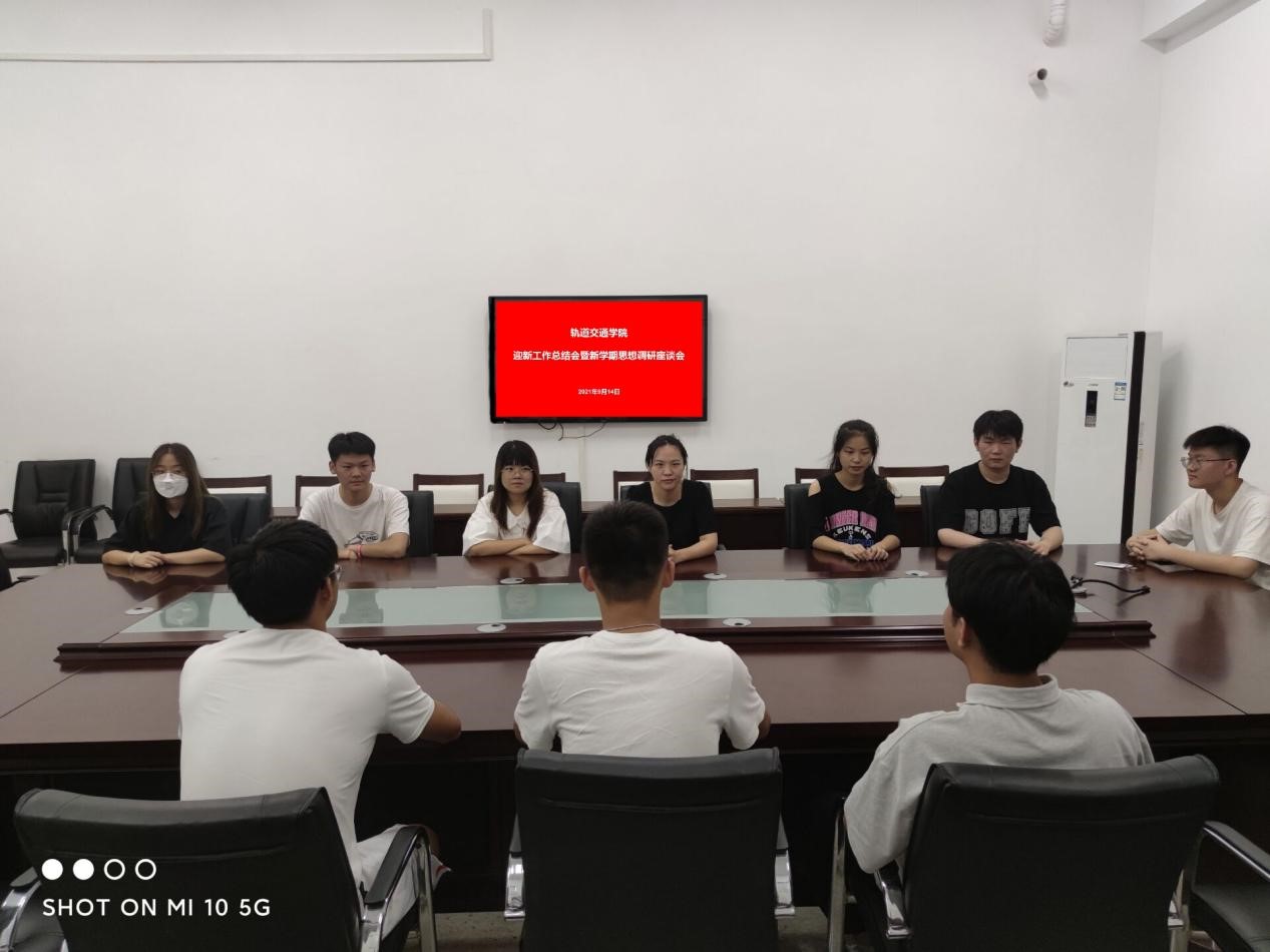 本次座谈会主要分为两部分进行:一、对于轨道交通学院团总支近日迎新工作的总结,查缺补漏;二、对于新学期伊始,对学生思想动态情况的了解。