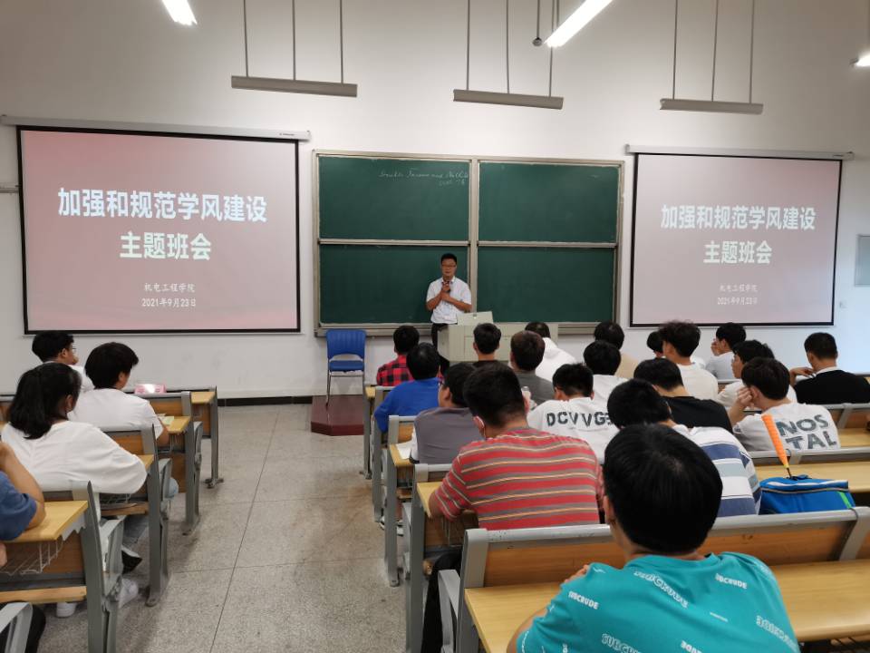 为营造良好的学习风气,帮助学生树立正确的学习观、成才观,以个人实际行动为学校的学风建设贡献力量,机电工程学院于9月24日开展全院范围内加强学风建设班级教育课。参加班级教育课的有学院领导、在校班级辅导员、20、21级各班班委。此次教育课由该院党总支副书记丁迎春主持。