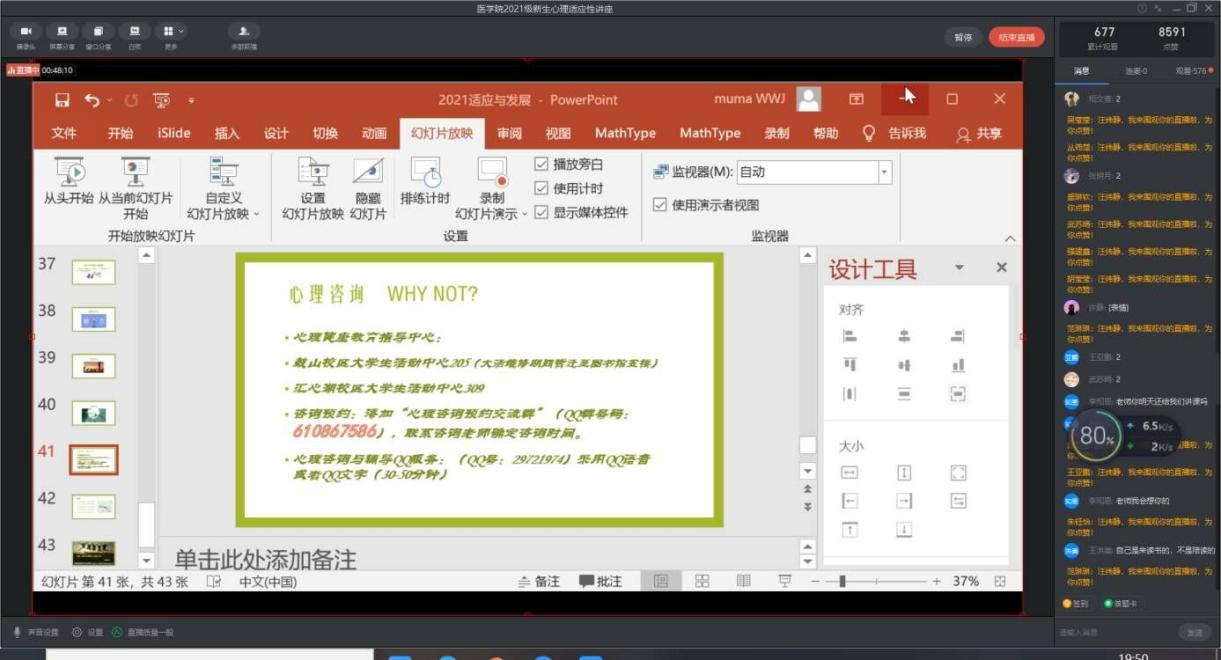 本次讲座采取网络直播的形式,打破了空间上的限制,加强了与学生之间的互动,给更多新同学表达想法提供了机会与便利。这种轻松愉快的讲座氛围,有助于大一新生们更好地理解讲座内容,接受心理健康知识普及,为提升新生的心理素质打下基础,也为将来他们以更加积极、从容的心态投入大学生活做了心理建设。(供稿:医学院 编辑:杨璨)
