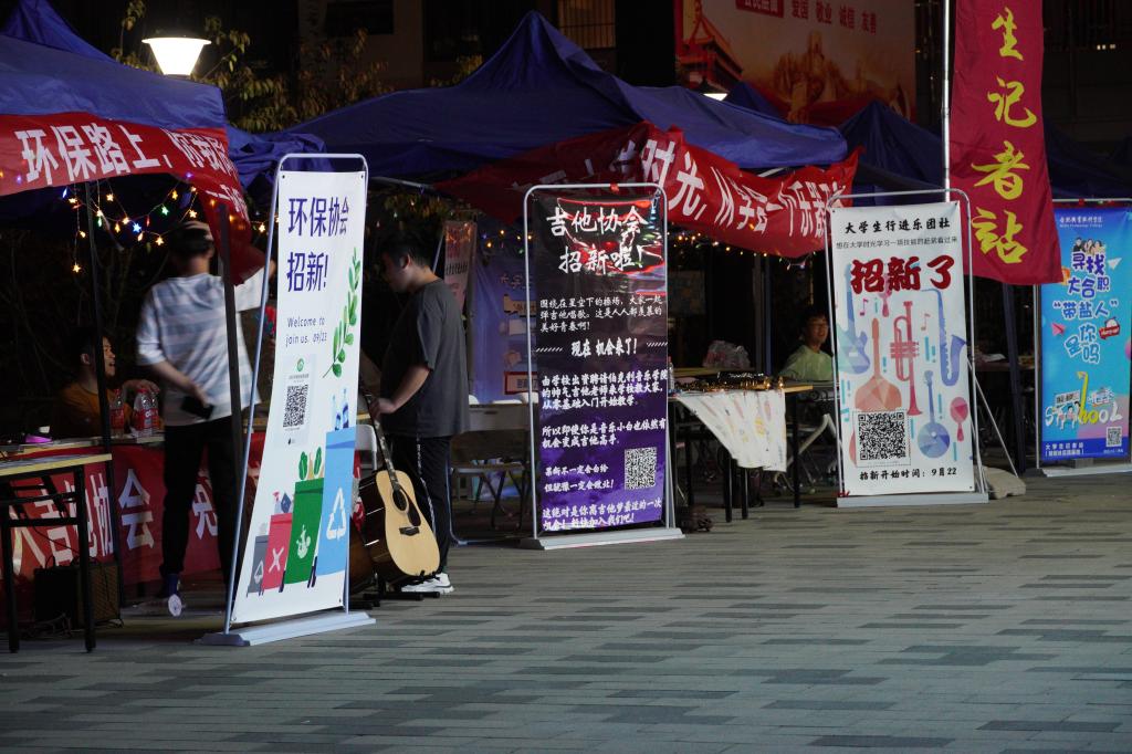 从一点三十分起,各社团负责人陆续进入指定位置,为即将进行的招新做准备。参加与此次招新活动创新创新社、青年马克思主义协会等126个社团,全部面向全校2021级新生。