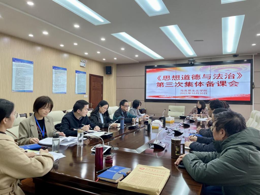 为持续加强对《思想道德与法治》(2021年版)教材体系的整体把握,进一步明确课程教学重点和难点,增强教学的实效性和针对性,10月20日下午,马克思主义学院组织召开了《思想道德与法治》课程第三次集体备课会。教研活动会由副院长汪满生主持。