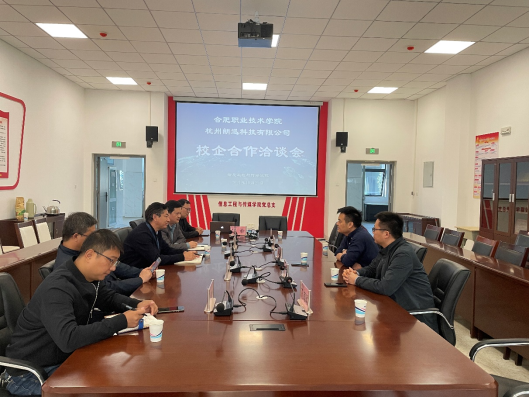 洽谈会在信息工程与传媒学院会议室举行。章炳林首先对徐董事长一行表示热烈欢迎,简要介绍了学院发展和专业建设情况。他强调,在宏观层面国家政策对于校企合作产教融合高度支持,学校育人要服务于合肥市国家产教融合试点城市建设,从微观落实上产教融合的落实要以项目为基础,企业作为育人主体与学校同步投入建设集成电路、芯片检测等技术开发中心、实训中心等项目平台,共建教学资源,满足人才培养需求,同步发挥服务社会的功能,开展学历教育、社会教育和培训。