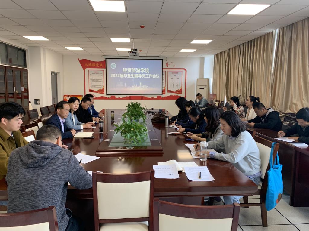 11月4日下午,经贸旅游学院在三楼党员会室召开了2022届毕业生辅导员工作会,会议由党总支副书记尹仕果书记主持,党总支书记梅亚松,院长赵红,副院长刘圣春以及全体毕业班辅导员参加此次会议。