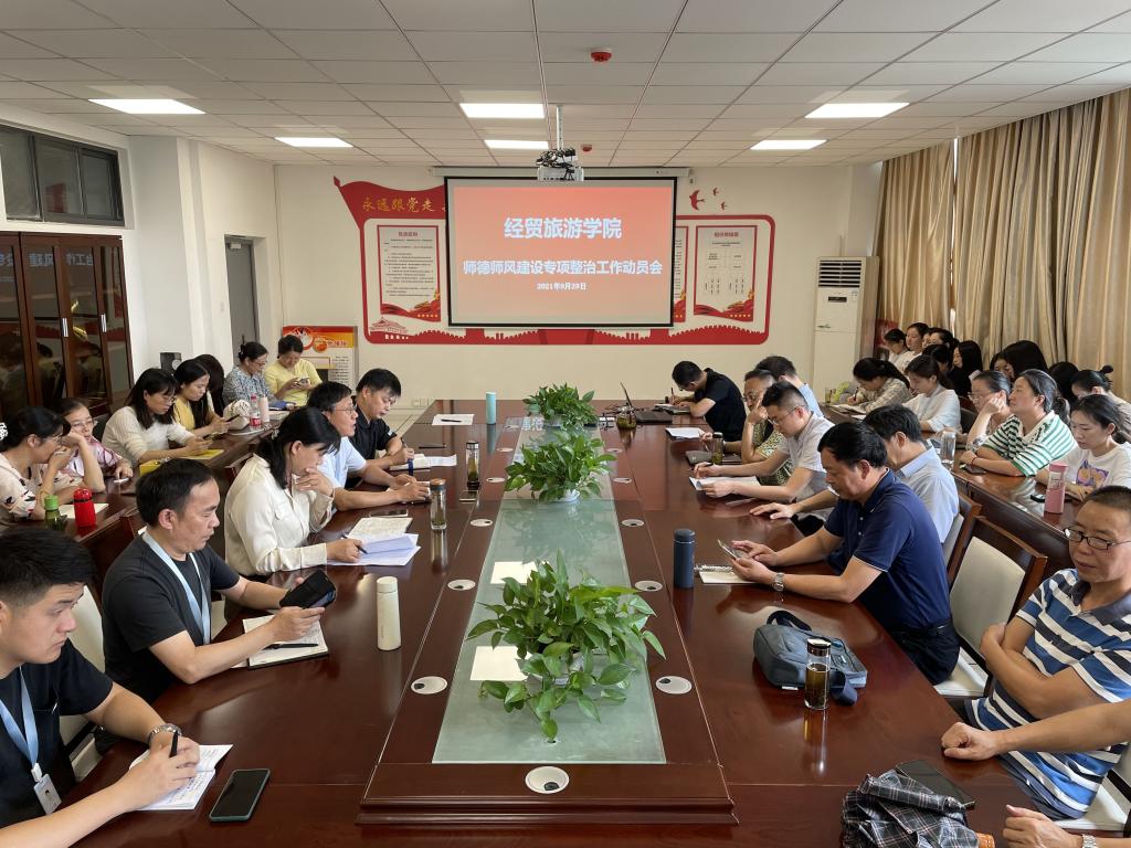 为切实贯彻落实中共安徽省委教育工委、安徽省教育厅在师德专题教育中开展高校师德师风建设问题专项整治的相关文件精神,进一步规范教师履职履责行为,落实立德树人根本任务,9月21日下午,经贸旅游学院召开了师德师风建设专项整治工作动员会。全院教职工参加了会议。