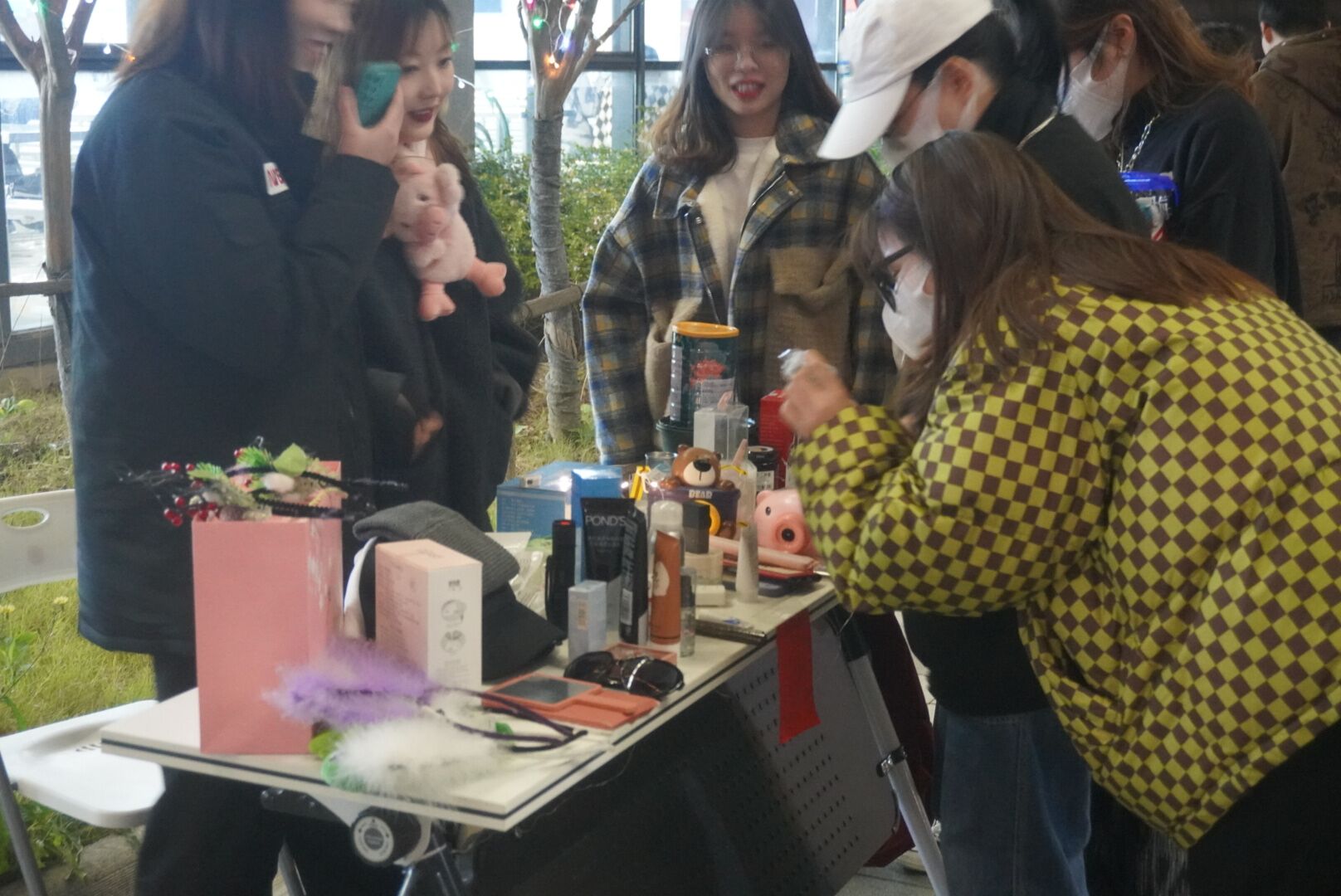 活动接近尾声,摊主们整理好自己剩余的商品和摊位的装饰品;志愿者们将桌椅以及悬挂在大学生活动中心外的彩灯都收拾整齐,随着活动场地卫生打扫结束,跳蚤市场的活动也正式落下帷幕。