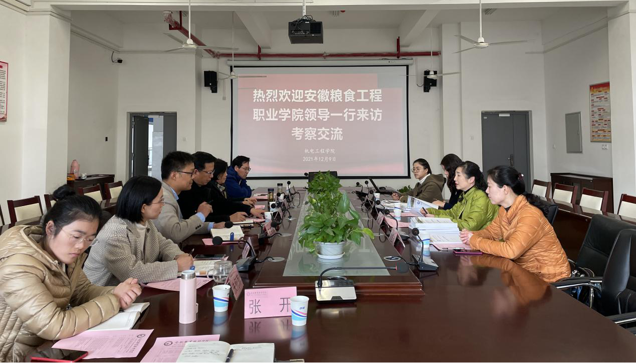 12月9日下午,安徽粮食工程职业学院粮工系主任孙勤、食品系主任杨璐、基础部副主任刘慧玲、党政办秘书宋德林一行来AC米兰官网机电工程学院开展“三全育人”经验交流活动。学校党委委员、办公室主任王海,基础教育学院副院长唐绍霞以及机电工程学院相关领导和老师给予热情接待。交流会由学院党总支副书记(主持工作)王克勇主持。