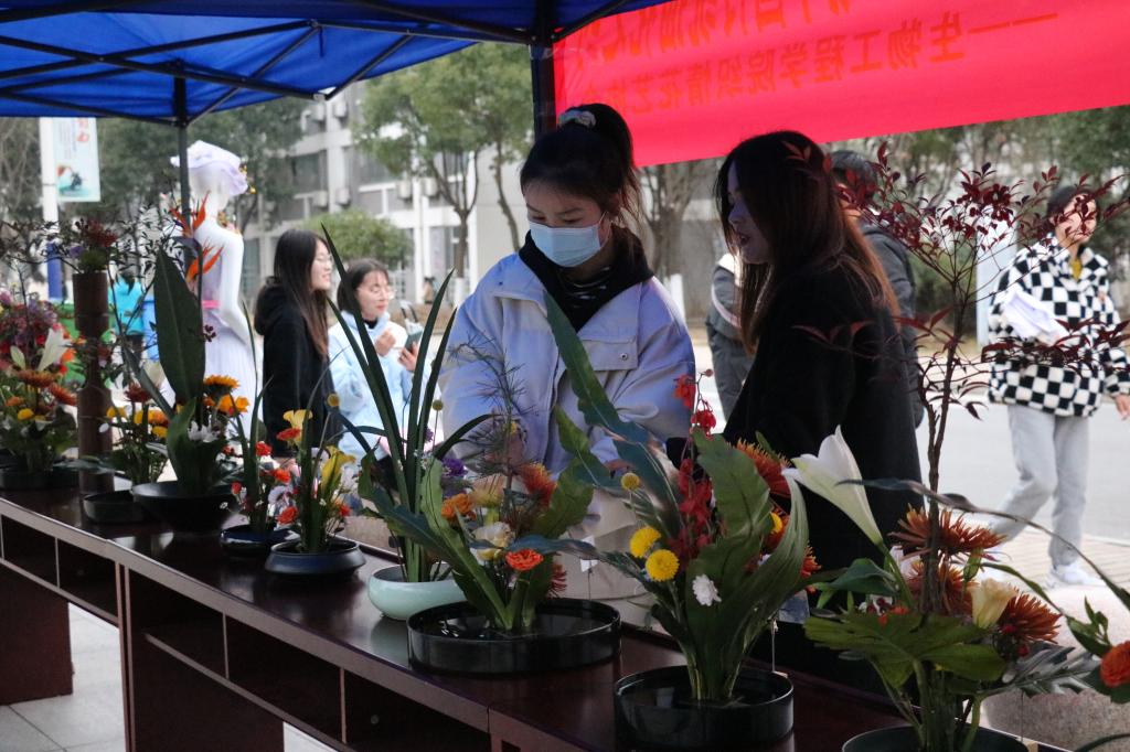 在讲解过后,织情花艺社团组织同学们通过猜花语、手工DIY制作花束等小游戏,向同学们传递植物生命的内涵,以及中国传统插花艺术的魅力。