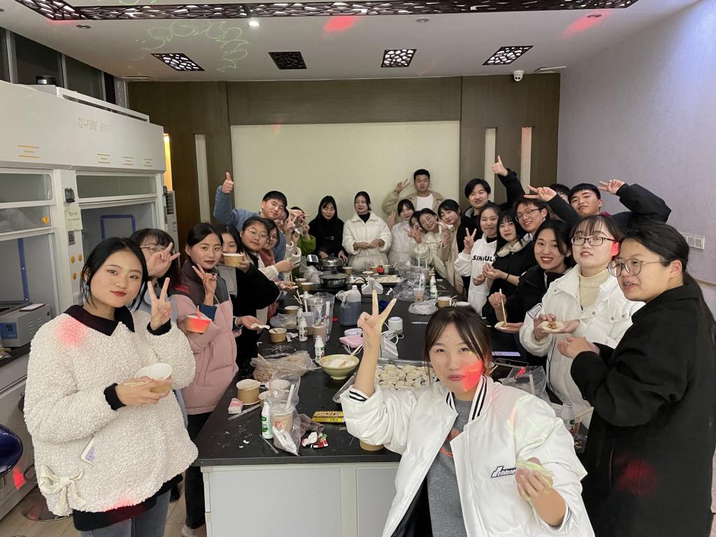 21号下午,医学院康复1、2、5、6班学生准时到达实训室准备场地和设备,由于人数较多,在老师们的安排下同学们分工明确,齐心包饺。活动现场充满了团结互助的气氛和大家庭的温暖。很快,热腾腾的饺子端了上来,大家都迫不及待的等着班长为大家盛上,脸上写满了快乐和幸福。随后,通过“猜歌名”“你画我猜”“拍手传数”等活动更加增强师生友谊,促进班级凝聚力。