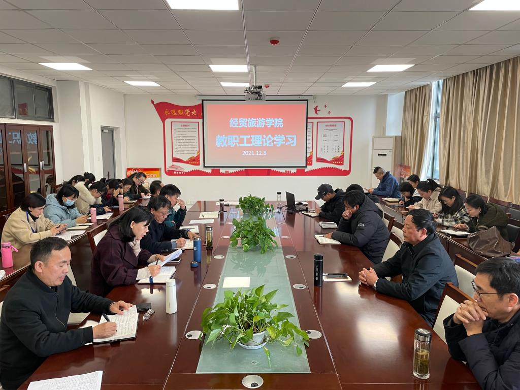 12月8日下午,经贸旅游学院在会议室召开会议,学院党政带领全体教职工,持续深入开展政治理论学习。党总支副书记尹仕果主持会议。