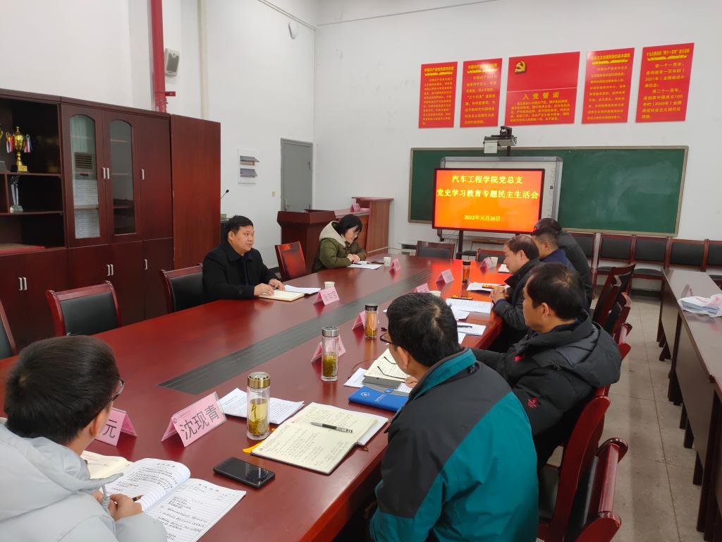 根据学校统一部署及要求, 1月26日上午,汽车工程学院党总支组织召开党史学习教育专题民主生活会。会议紧扣主题,聚焦深入学习贯彻习近平新时代中国特色社会主义思想,紧密结合思想和工作实际,严肃开展批评和自我批评。