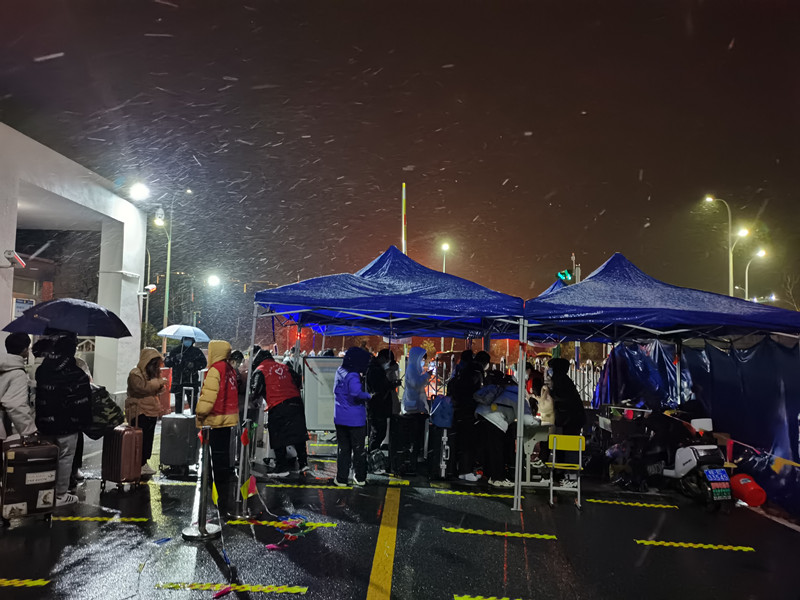 在虎年新春的欢乐声和精彩冬奥的喝彩声中,2022年寒假进入尾声,盼望已久的春季学期开学来临。2月17日清晨,一场纷纷扬扬的雨夹雪如期而至,医学院迎来2022年春季学期学生返校。再大的雪,也阻挡不了医学学子们返校的路;再冷的雨,也遮挡不了医学老师们盼望学生归来的目光。