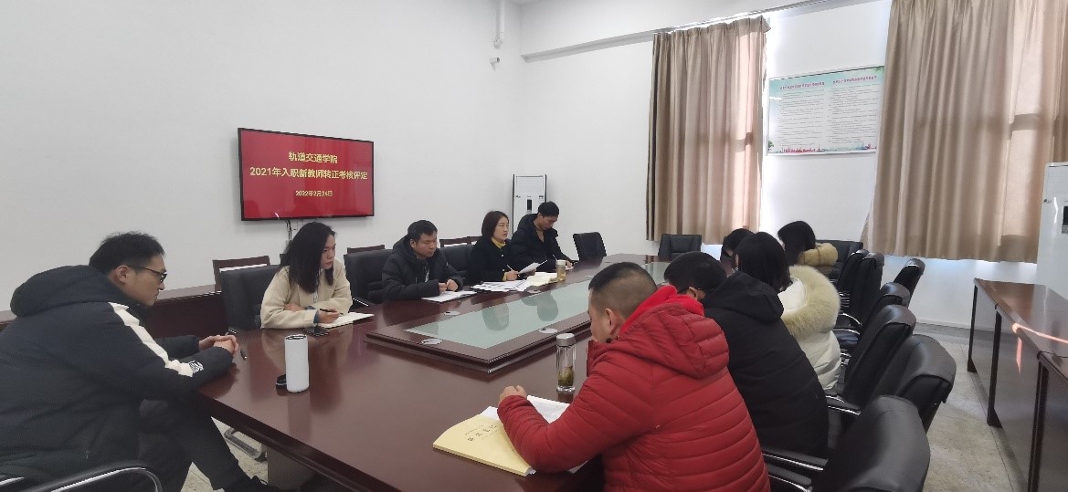 2月24日下午,轨道交通学院对2021年新入职教师开展转正考核工作。轨道交通学院党总支书记佘海月、副院长杨光明(主持工作),学院综合办、教学办、团总支、教研室负责人组成考核组。考核以个人汇报和考核组点评相结合的形式展开。