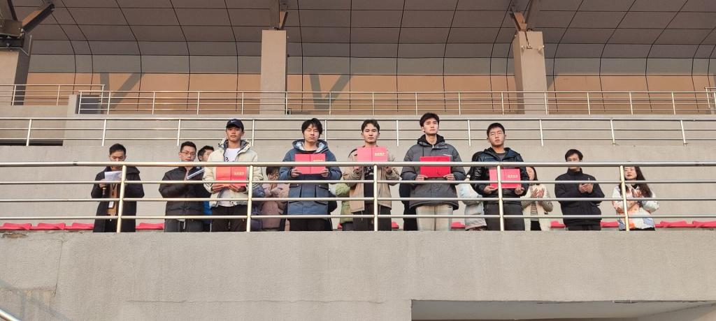 仪式上,学院对上学期期末“青春爱运动 健康强中国”迎冬奥21天体育打卡活动中获得“体育打卡标兵班”“体育打卡标兵”“体育打卡之星”的班级和集体进行了颁奖,对获得2021-2022学年第一学期“文明教室”的班级进行了表彰。来自21级城轨工程1班的李定国同学代表发言,他分享了在体育打卡活动中,全体同学积极参加打卡,不仅强健身心体魄,而且强化了班级凝聚力,倡议同学们继续保持锻炼的好习惯,更好地生活和学习。