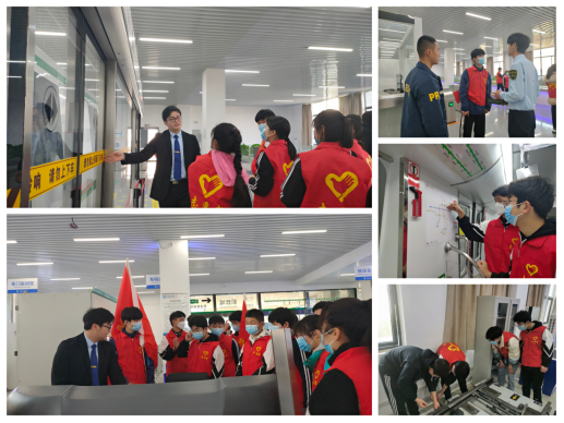 来访师生参观了AC米兰官网轨道交通学院车辆、运营、机电等实训室和智能车训练室。学生们坐上了列车驾驶座椅,看清了一些地铁设备的内部构造,亲自体验了手摇道岔。大学生解说团的志愿者们对城市轨道交通的运行情况、地铁站内的消防和监控系统的介绍让他们对每日乘坐的城轨地铁有了全新的认识。随后,师生一起参观了学校的汇德广场,认真学习了广场中象征着工匠精神的文化柱。