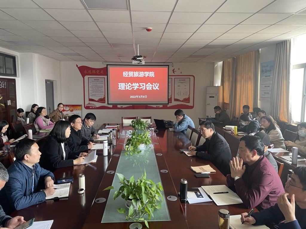 为将政治理论学习进一步推向深入,3月9日下午14:00,经贸旅游学院在会议室举行政治理论学习会议。学院党政和全体教职工参加会议,学习会由党总支副书记尹仕果主持。