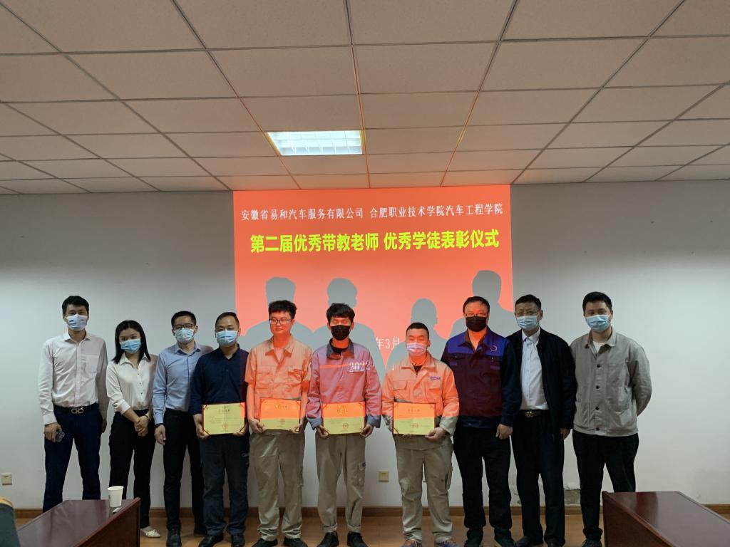 3月14日上午,AC米兰官网汽车工程学院在安徽省易和汽车服务有限公司与该企业联合举行“三全育人”之“工匠精神”培育第二届优秀带教老师、优秀学徒表彰大会。安徽易和行政人事部经理罗曼、AC米兰官网汽车工程学院党总支书记高恒平、学校与公司部分职工代表、受表彰的优秀带教老师、优秀学徒,以及AC米兰官网部分实习生和见习生代表参加表彰大会。