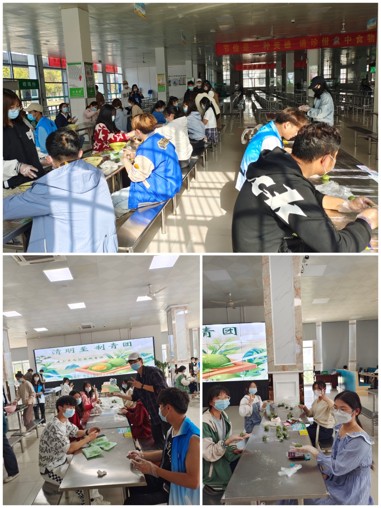 清明兼具自然与人文两大内涵,既是自然节气,也是传统节日。清明节有许多传统习俗,吃青团就是其中之一。为了丰富同学们的清明假期生活,品味民俗文化,4月5日下午3点,建筑工程学院分别在鼓山校区一、二食堂组织开展了清明节青团DIY活动。根据疫情防控工作要求,活动分为三组进行。同学们戴好口罩、手套,分工协作,你和面,我揉面,欢声笑语中开始自制青团。