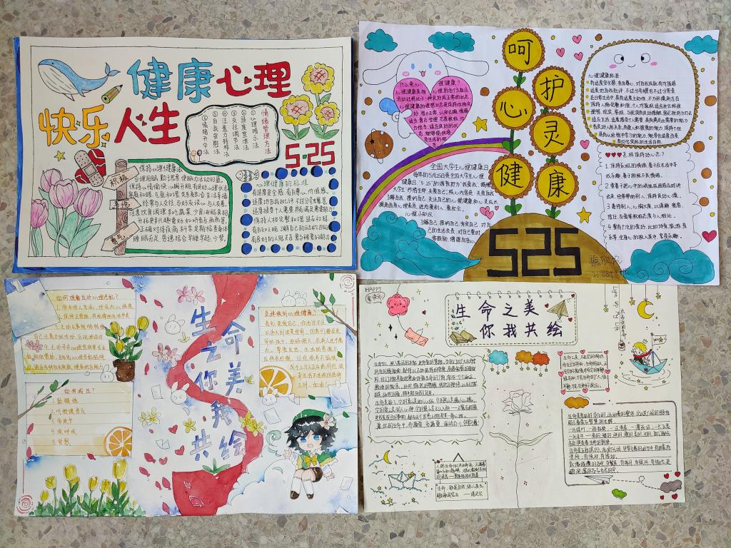 开展心理健康教育手抄报活动。学院依托校心理中心“生命之美 你我共绘”的主题举办了心理健康教育手抄报的活动。活动自5月上旬开展以来,收到了来自同学们的50多个作品。活动中同学们积极参与,充分发挥自己的想象力和用手中的笔表达了自己对主题的认识和理解。一幅幅五彩缤纷的手抄报承载着心理健康知识,在满足视觉享受的同时,增长了同学们对于心理健康的认识。