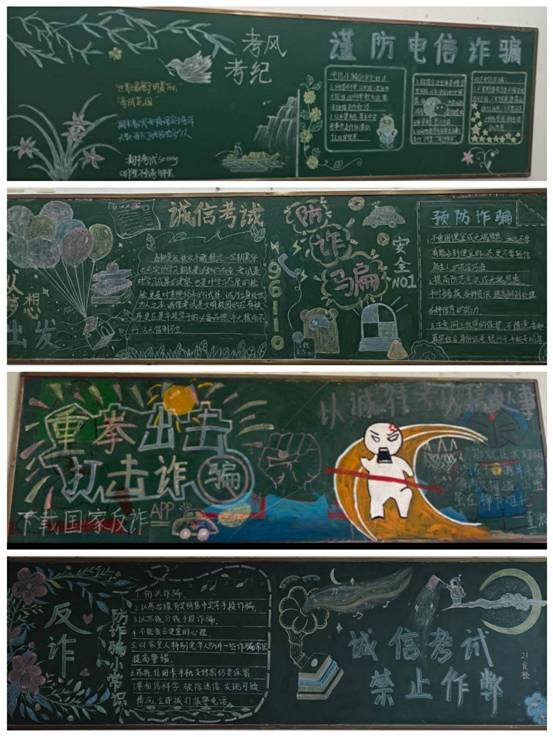 大一班级辅导员还组织了班级学生利用课余时间绘画反电诈黑板报,形式多样且极具表现力的黑板报,大力渲染了该院反电诈的气氛,充分发挥了第二课堂的教育引导作用。