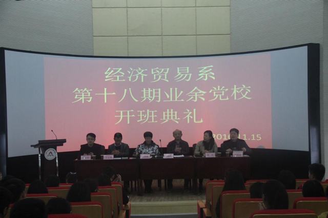 根据经贸系党总支统一安排,11月15日下午,经贸系在学院图书馆二楼报告厅隆重举行第18期业余党校开班典礼。学院党委委员、副院长周晓隆应邀出席,经贸系党总支、学生支部全体成员及第18期业余党校全体学员参加了开班典礼。