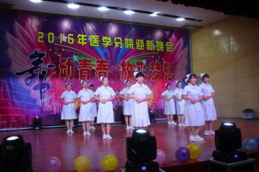 金秋十月,丹桂飘香!在这个充满希望和收获的季节里,我们迎来了1000多名对未来满怀憧憬的新生。为了让他们感受到大学生活的丰富多彩,更好地融入校园环境之中,医学分院于2016年10月12日晚上举办了以“舞动青春,放飞梦想”为主题的迎新文艺晚会。学院党委副书记罗兆好(主持党委工作)、学院副院长孙兴林和学院学保处、团委等部门负责人应邀而来与医学分院广大师生共聚一堂,观看了本场晚会。