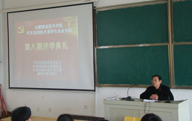 4月25日下午,汽车系在教学楼A楼一楼阶梯教室举办简朴而庄严的第八期学生业余党校培训班开学典礼。汽车系党总支书记汪春荣、汽车系党总支委员和培训班全体学员参加了开学典礼。开学典礼由系党总支委员、学生党支部书记伍东升主持。