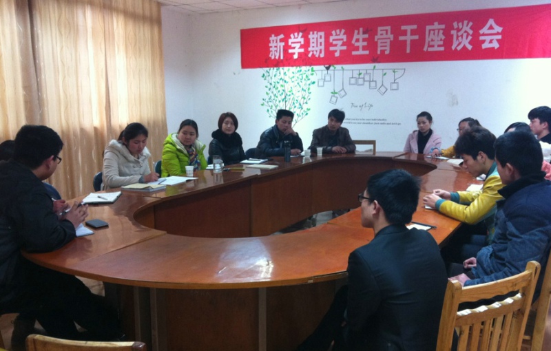 新学期伊始,为全面了解学生干部的思想动态,交流总结假期的学习、生活情况,展望新学期规划,院团委于2月25日、26日下午在团委会议室召开了新学期学生干部座谈会,院团委主要负责人,院系主要学生干部参加了座谈会。