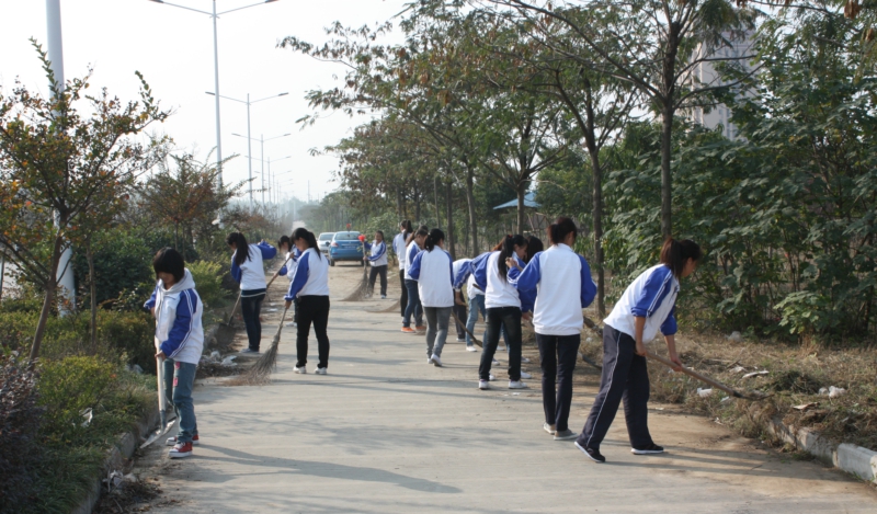 由于事前准备充分,因而清扫活动进行得非常顺利。在清扫过程中,团员青年干劲十足,她们在辅导员窦红平等老师的指挥下,有的将草木丛中的白色垃圾一次又一次地弯腰拾起,装入垃圾袋;有的对地面废弃物进行清扫,作集中处理;有的对张贴在校园大门两旁的非法广告信息进行铲除和清洗。