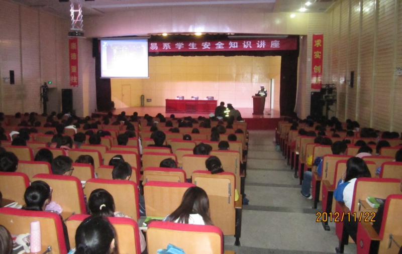为了构建和谐、平安的校园环境,提高学生的安全意识,强化校园安全文化教育,营造校园安全氛围,引导学生树立安全理念,11月22日下午经贸系在大学生活动中心举行安全知识教育专题讲座。巢湖市公安局交通警察大队三中队指导员张鸿飞、院学生保卫处处长祝建平,分别就交通和公共安全进行了讲解,经贸系近500名大一学生聆听了讲座。