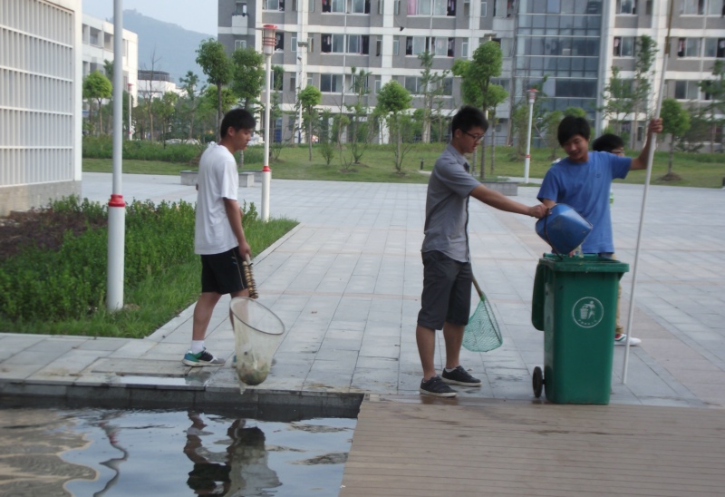 院学生会、青年志愿者协会80余人参与了此次活动。志愿者们分成4个小队对校园池塘、宣传展板、大学生活动中心玻璃门和草坪等处进行了彻底的清扫。志愿者们在工作中充分体现了志愿者精神,为全院师生营造了干净、整洁的校园环境,同时以实际行动倡导同学们爱护校园环境。
